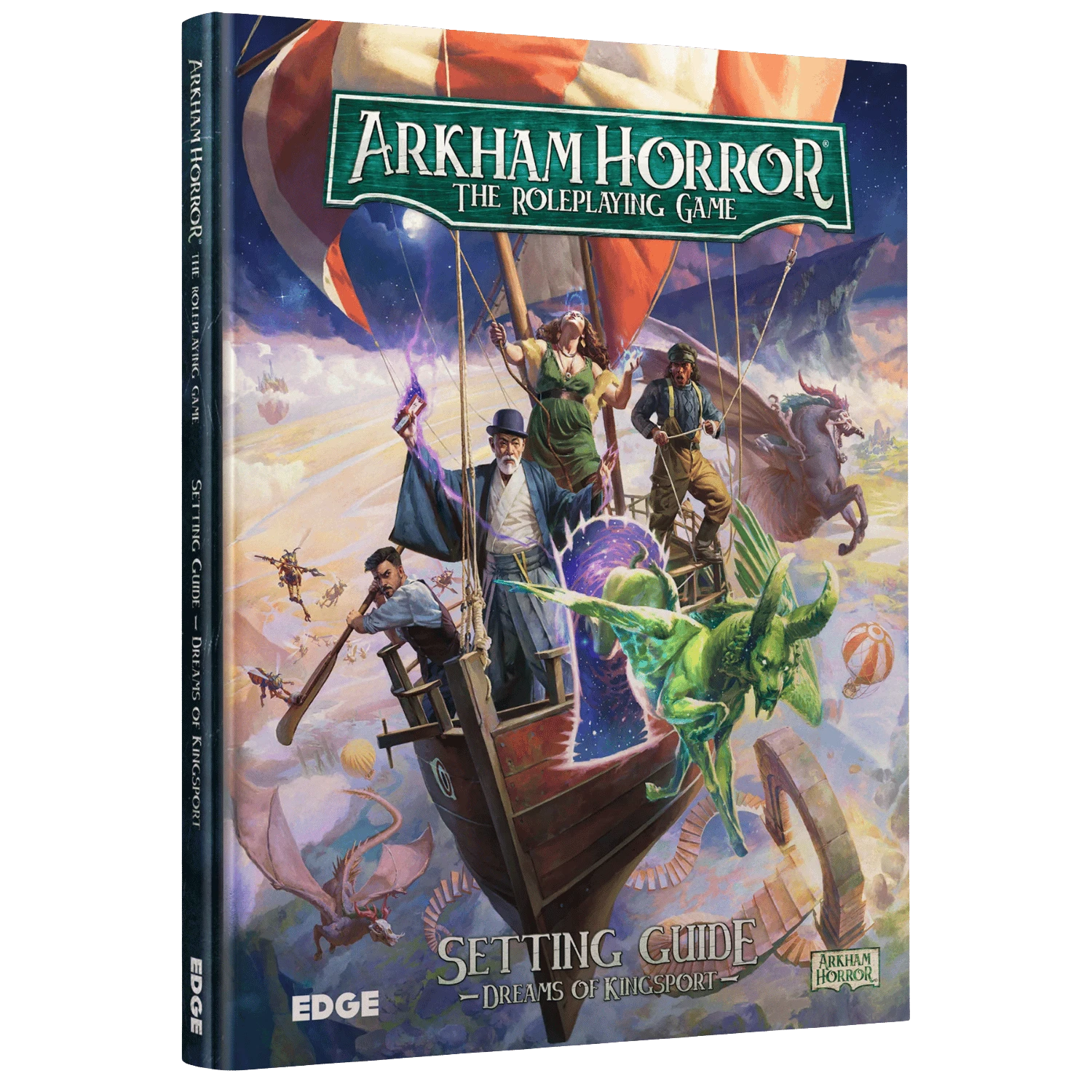 Arkham Horror RPG - Dreams of Kingsport is an expansive setting guide that takes your campaigns beyond the wakingworld. Dive into the iconic mist-shrouded town of Kingsport and unlock new rules for astral projection and creating gates to other worlds, allowing investigators to explore the fabled Dreamlands. This book introduces the Dreamer, a brand-new archetype for players with unique knacks and visionary abilities. It also includes a wealth of new content for players and game masters alike: new equipment, powerful relics, arcane tomes, and a complete ready-to-run scenario. To bring your sessions to life, the set comes with two double-sided maps–one featuring Kingsport and the Dreamlands, and the other with key locations from the included adventure.