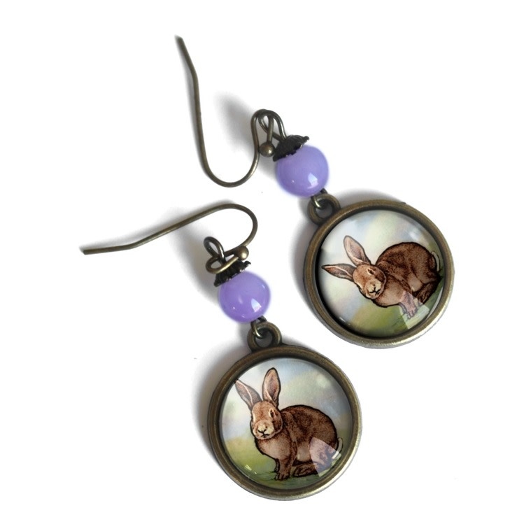 Adorable Bunny earrings with pale purple accent beads.