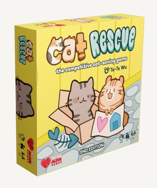 The cooperative card game Cat Rescue is back with an exciting Second Edition — now with a brand-new competitive mode! In this new edition, you'll work to rescue, foster, and adopt adorable cats, giving them a chance at a loving forever home.