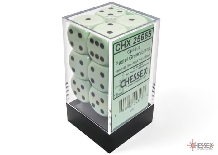 CHX 25665 16MM D6 DICE BLOCK PASTEL GREEN W/BLACK
