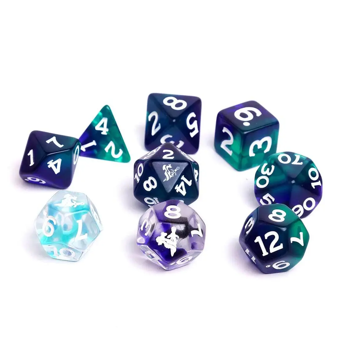Step into adventure with the Daggerheart Duality Dice: Fate of the Mortal Realms Dice Set, crafted exclusively for Daggerheart, the bold new tabletop RPG from Darrington Press! This 9-dice set is designed for the world of Daggerheart, where every roll shapes your hero’s fate.