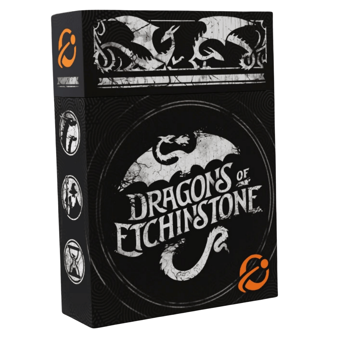 In Dragons of Etchinstone, you, the brave Ether Mage, must work your way through four Regions and a challenging final encounter against one of the four dragons. You'll use your Action cards to manage dangerous Journeys and formidable Enemies. Defeat them, and your reward is XP, which you can use to upgrade your action cards. Defeat or narrow victories against Journeys results in losing time, which may force you to face the dragon before you feel ready. Defeat or narrow victories against Enemies results in taking damage, which forces you to downgrade your Action cards and weakens your power.