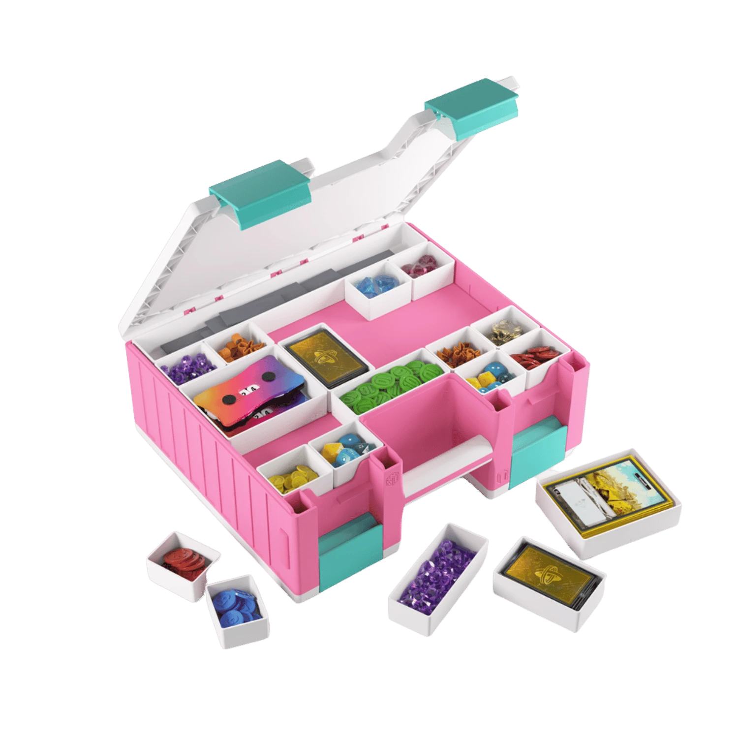 • Take your gaming storage to the next level! The Game Castle is an ingenious, double-sided, all-in-one solution for board gamers, card game players, and tabletop fans. This brand-new product can be opened on either side to allow separate access to a large number of cards and tokens. The innovative design provides safe storage while also enabling easy and comfortable transportation to game nights or tournaments with the detachable, adjustable shoulder strap and integrated handle.