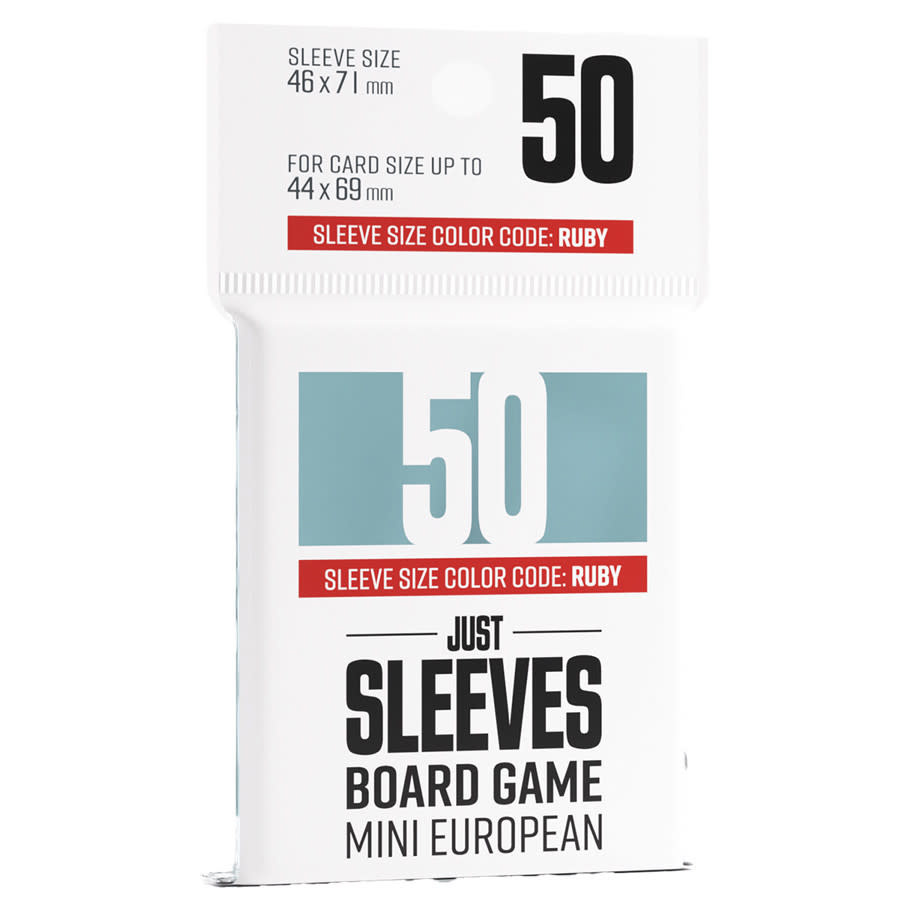 Just Sleeves – Mini European-Sized are a cost-effective option designed to product board games. Measuring 44 x 67 mm, these sleeves are perfect for games with Mini European size cards, and this size matches the Gamegenic Prime line of ruby color sleeves. 50 sleeves per pack.