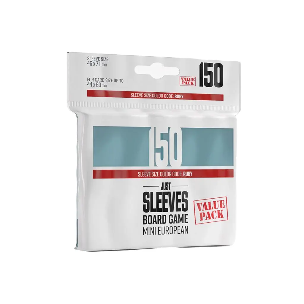 Measuring 44 x 67 mm, these sleeves are perfect for games with Mini European size cards, and this size matches the Gamegenic Prime line of ruby color sleeves. 150 sleeves per pack.