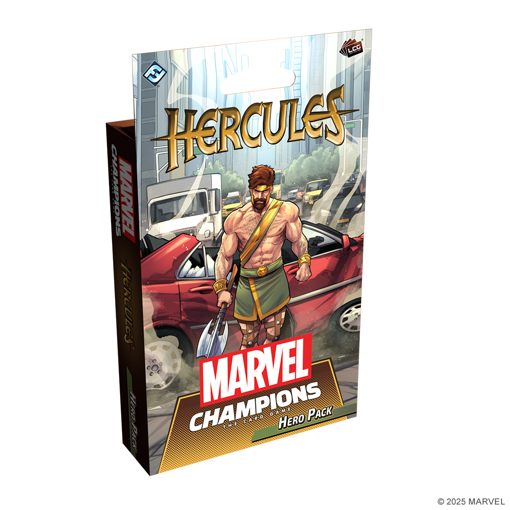 He is a man known by many names. Born Alcaeus, renamed Herakles, then—to distance himself from Hera—he was renamed again to Hercules. Now, his friends just call him Herc. This son of Zeus has had a tumultuous relationship with Olympus throughout his long life; sometimes he is their glory, other times their disgrace. But no matter what, there are few problems that he doesn’t first try to solve with his immense, godlike strength. Now, the mighty hero Hercules muscles into your games of Marvel Champions: The Card Game! With his immense strength and his ability to take on herculean tasks in exchange for mighty rewards, Hercules is a unique and powerful hero worthy of the fame his name brings. In this hero pack, you’ll find Hercules, his fifteen signature cards, his special side decks of gifts and labors, and a full assortment of Leadership cards inviting you to lead his fellow Avengers into battle.