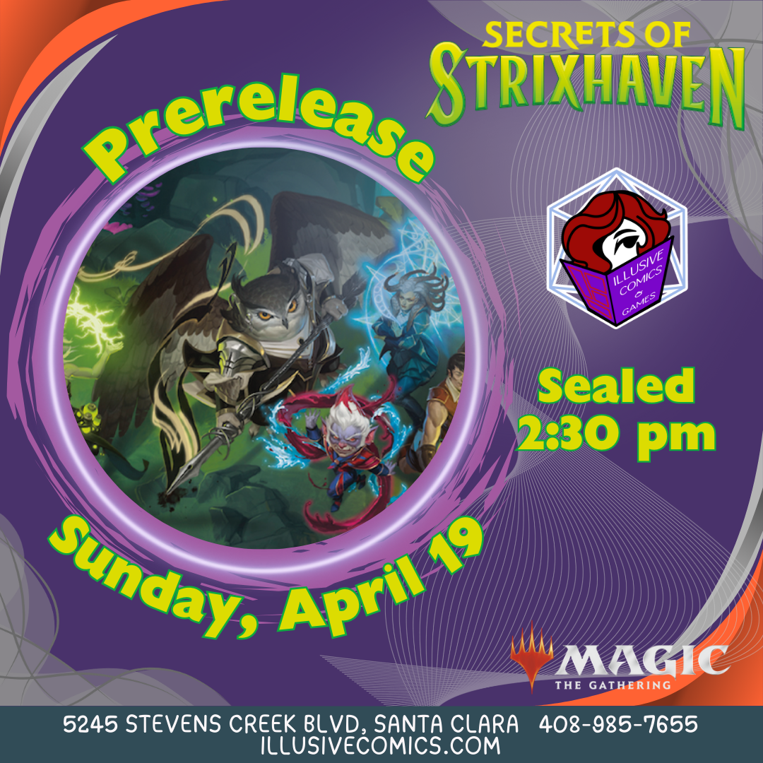 Each player will receive a prerelease kit containing 5 play booster packs, a Strixhaven College-themed Prerelease booster, a traditional foil Rare or Mythic card, and a spindown D20. Players will build a 40 card deck using the cards they open and basic lands available in store.