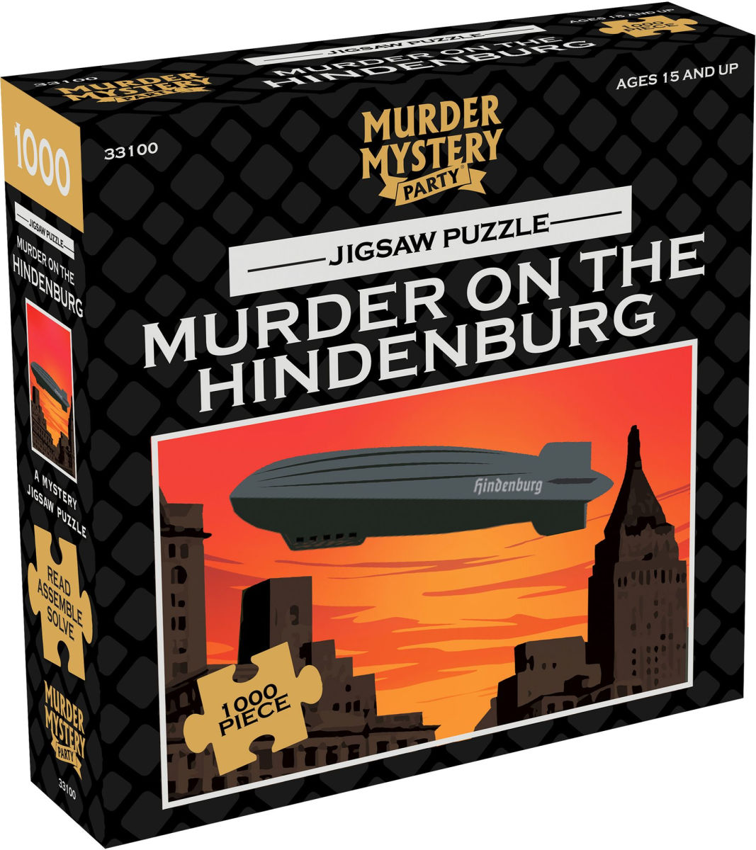 Read about Klaus von Klinkhofer and his fateful flight on the heralded airship. Next, assemble the 1000-piece jigsaw puzzle and discover the hidden clues found on board the zeppelin. Then solve "Murder on the Hindenburg" by piecing together clues from the story and the completed puzzle. Story by Floyd KemskeBeware! The puzzle is different from the box cover. Assembled puzzle measures approximately 23 x 29 inches.Recommended for 1 or more players, ages 15+.Contents include: 1000 Puzzle Pieces, Story Booklet