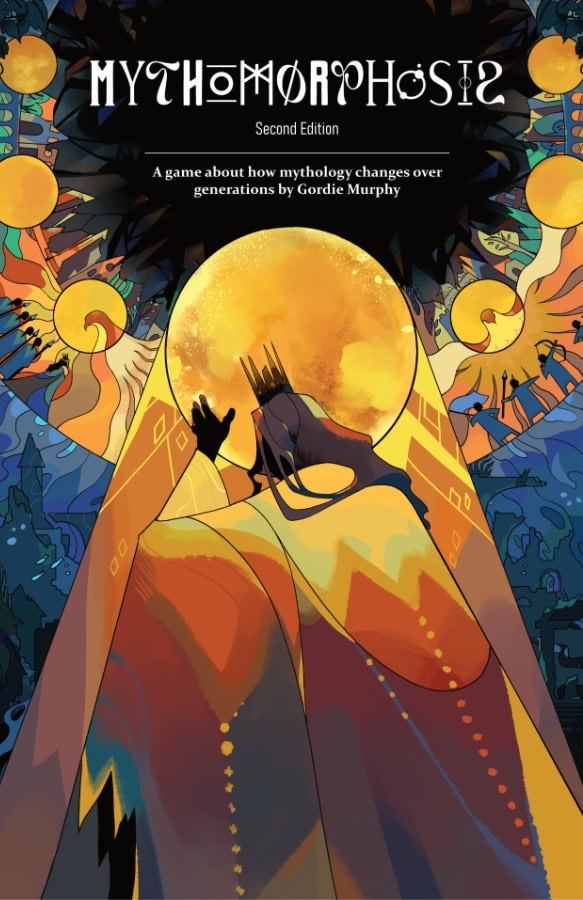 Mythomorphosis: 2nd Edition is a genre-neutral collaborative storytelling roleplaying game about how mythology changes over time. Players will create a society and a dominant myth that their society tells. Over five generations, they'll create historical events that define each generation and spur new changes to the myth. Mythomorphosis is designed for 1-4 players, age 10 or older, and for single play sessions lasting 2-3 hours. The game does not require a GM, and needs no prep time--just a stack of blank index cards and writing utensils.