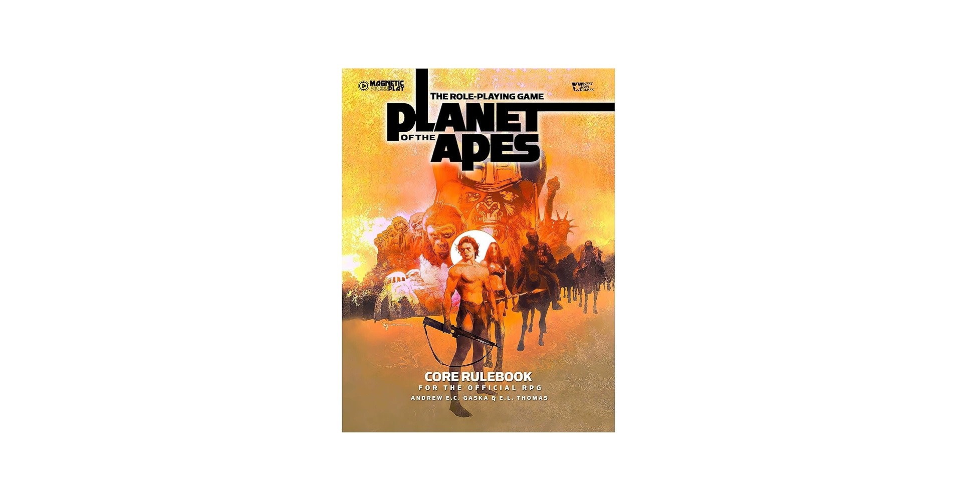 Built on the official Magnetic Variant (D6MV) of the classic D6 System rule set created by West End Games, the Role-Playing Game of the PLANET OF THE APES is easy to learn yet full of challenges to master. With settings and lore written by sci-fi novelist Andrew E.C. Gaska, this core rulebook contains all you need to roleplay in this upside-down world where apes evolved from humans.