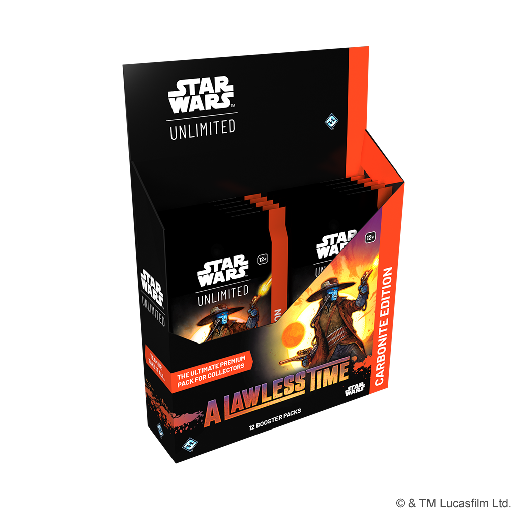 Enhance your collection with Carbonite Edition booster packs! In this Carbonite booster pack display, you’ll find 12 individually wrapped booster packs. These special premium packs are loaded with variant cards that have special aesthetic treatments—including the Carbonite-exclusive Prestige variants—making them a perfect pick for collectors.