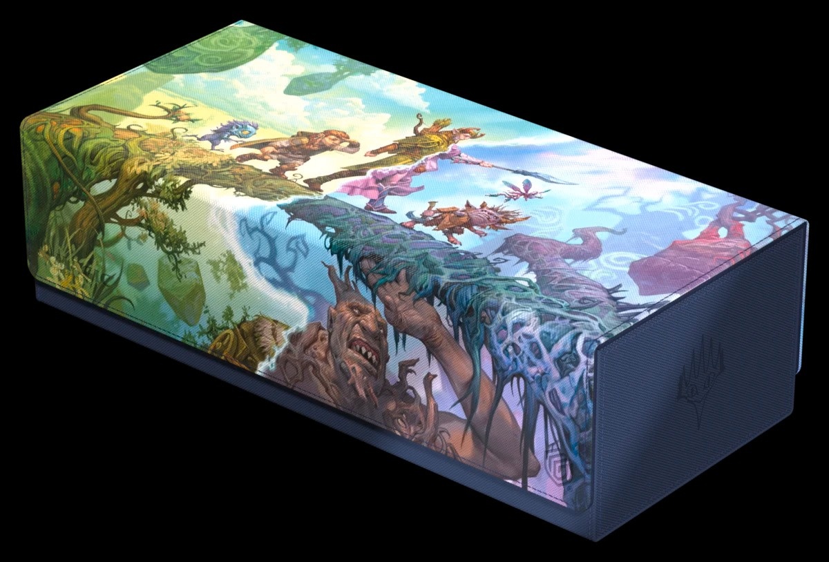 Ultimate Guard’s Arkhive 1000+ Xenoskin with officially licensed artwork from Magic: The Gathering’s “Lorwyn Eclipsed” set is the perfect MTG mass storage box for storing and carrying multiple deck boxes and/or a large number of single cards. The completely removable lid is secured on both sides with a strong magnetic closure as well as Ultimate Guard’s trusted ZnapClaw mechanism. In addition, the durable Xenoskin case and microfiber inner lining ensure excellent protection for up to 1125 double-sleeved cards in Ultimate Guard sleeves*, ten Boulder 100+ deck boxes, or six Boulder 133+ deck boxes. Thanks to its capacity, the Arkhive 1000+ Xenoskin is also the ideal deck box for storing a cube.