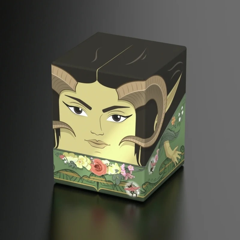 Collectible box for storing TCG decks, tabletop gaming accessories, and/or collectibles. The Maralen Squaroe from the Magic: The Gathering edition holds up to 100 cards in double protective sleeves if used as a deck box. Squaroes are made from 78% renewable recources.