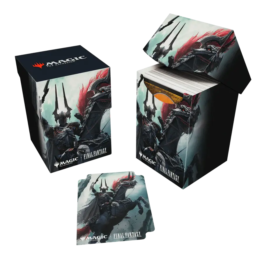 • The Magic: The Gathering®—FINAL FANTASY™ 100+ DECK BOX® card storage container features vibrant, full-color artwork  and includes one deck divider. Made with archival-safe, non-PVC, rigid polypropylene materials, you can store up to 100 double-sleeved cards with confidence. The self-locking lid keeps your cards securely stored when not in use, while also offering easy access. Sized for standard-size trading cards.