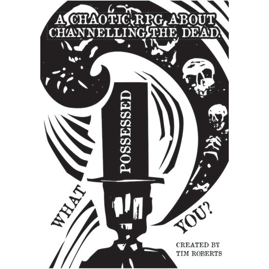 What Possessed You? is an RP-heavy role-playing game with just a few rules, a GMless mode, some character creation and chaotic results. It is designed for 2 to ∞ players and requires all kinds of dice and some timers.