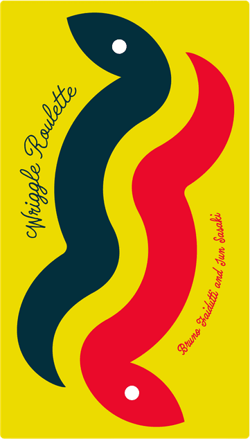 In Wriggle Roulette, players take turns reaching into a bag filled with eel- and snake-shaped wooden pieces, trying to pull out as many eels as possible — but if the number of snakes grabbed by all players exceeds the limit, a "snake outbreak" occurs, and the player who grabbed the most pieces loses all of their eels.